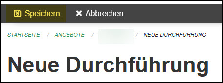 Nach dem erfassen des Angebotes (Inhalt des Kurses) müssen die Durchführungen (Termine) (1) erfasst werden.